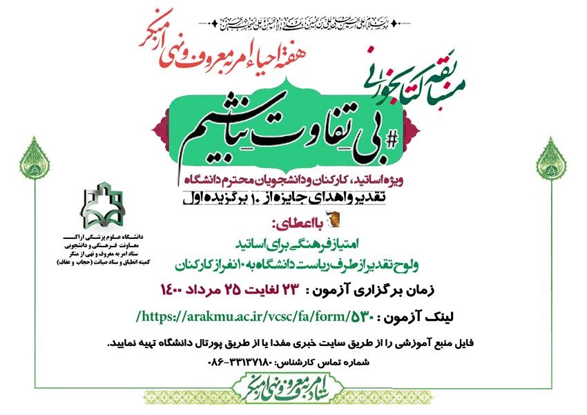 مسابقه کتابخوانی بی تفاوت نباشیم ۲۰ مرداد ۱۴۰۰ | ۰۹:۱۲ کد : ۱۹۲۷۳ اطلاعیه ارسال به دیگران نام شما ایمیل شما ایمیل دریافتکننده ارسال انصراف تعداد بازدید:۲۹۶۴۰ لینک ورود به آزمون