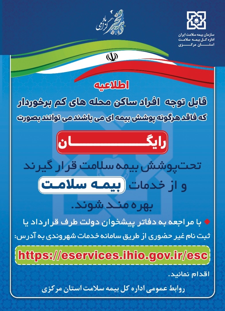 طرح بیمه نمودن افراد فاقد پوشش بیمه ای در محله های کم برخوردار ۰۳ اسفند ۱۴۰۰ | ۱۲:۴۸ کد : ۲۴۱۷۷ اطلاعیه ارسال به دیگران نام شما ایمیل شما ایمیل دریافتکننده ارسال انصراف تعداد بازدید:۲۶۱۲۶
