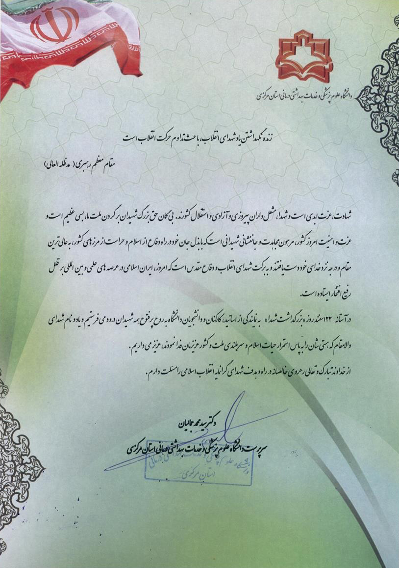 متن تقدیرنامه سرپرست دانشگاه برای بزرگداشت شهدا ۰۷ اسفند ۱۳۹۷ | ۱۳:۰۰ کد : ۳۰۱۸ اصلی ارسال به دیگران نام شما ایمیل شما ایمیل دریافتکننده ارسال انصراف تعداد بازدید:۴۷۲۸۱