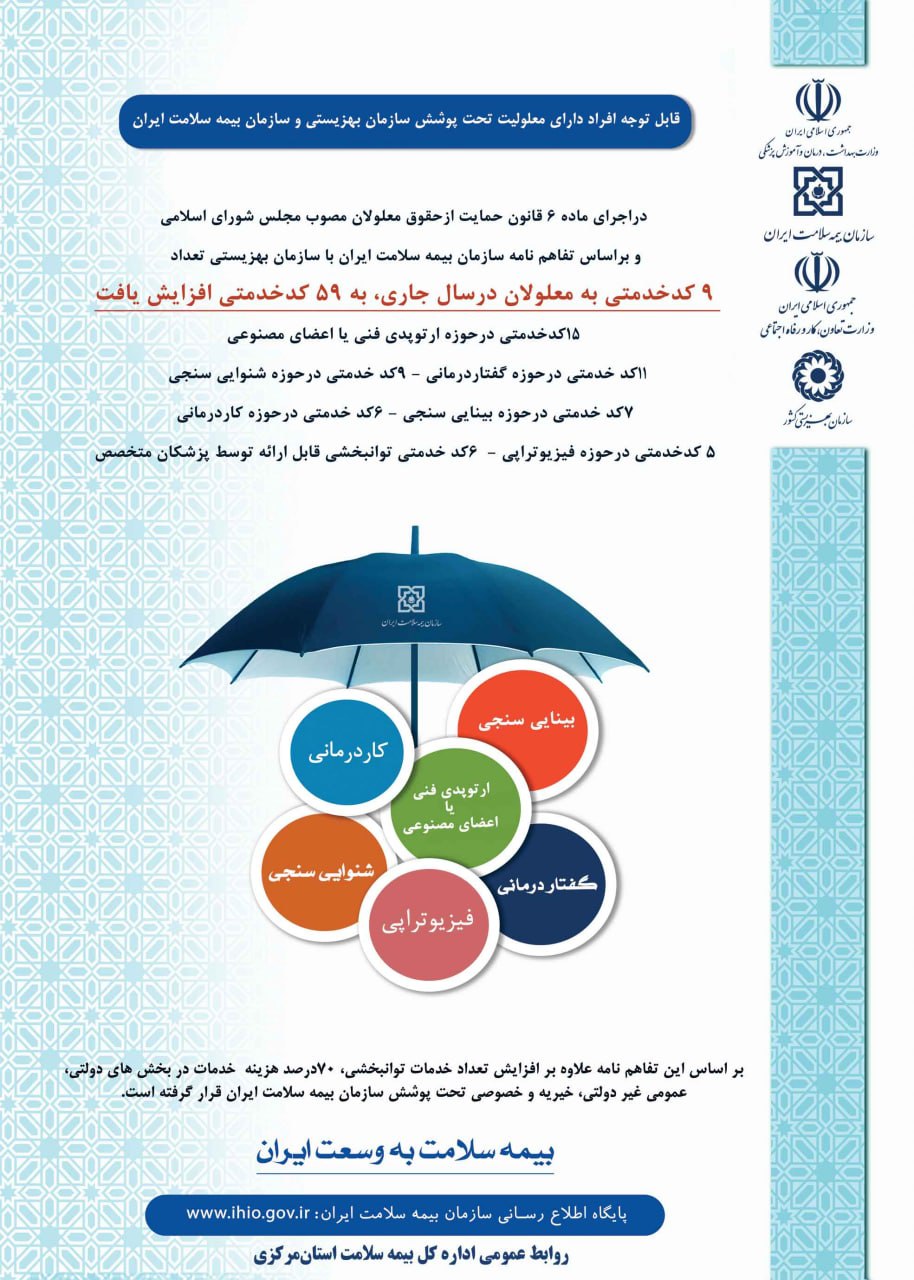قابل توجه افراد دارای معلولیت تحت پوشش سازمان بهزیستی و سازمان بیمه سلامت ایران ۱۲ آذر ۱۴۰۱ | ۰۹:۵۵ کد : ۳۰۹۷۱ اطلاعیه ارسال به دیگران نام شما ایمیل شما ایمیل دریافتکننده ارسال انصراف تعداد بازدید:۲۲۰۲۰