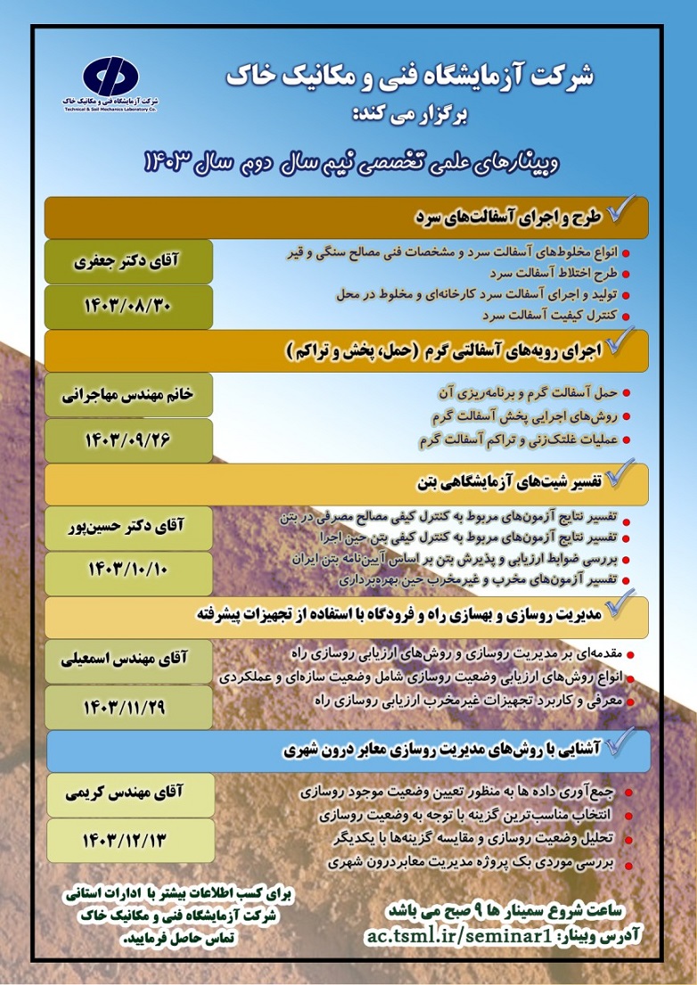 وبینارهای علمی تخصصی شرکت آزمایشگاه فنی و مکانیک خاک ۲۶ آبان ۱۴۰۳ | ۱۲:۵۰ کد : ۴۷۷۳۴ اطلاعیه ارسال به دیگران نام شما ایمیل شما ایمیل دریافتکننده ارسال انصراف تعداد بازدید:۹۴۴۲ برگزاری وبینارهای علمی تخصصی نیم سال دوم سال ۱۴۰۳ شرکت آزمایشگاه فنی و مکانیک خاک