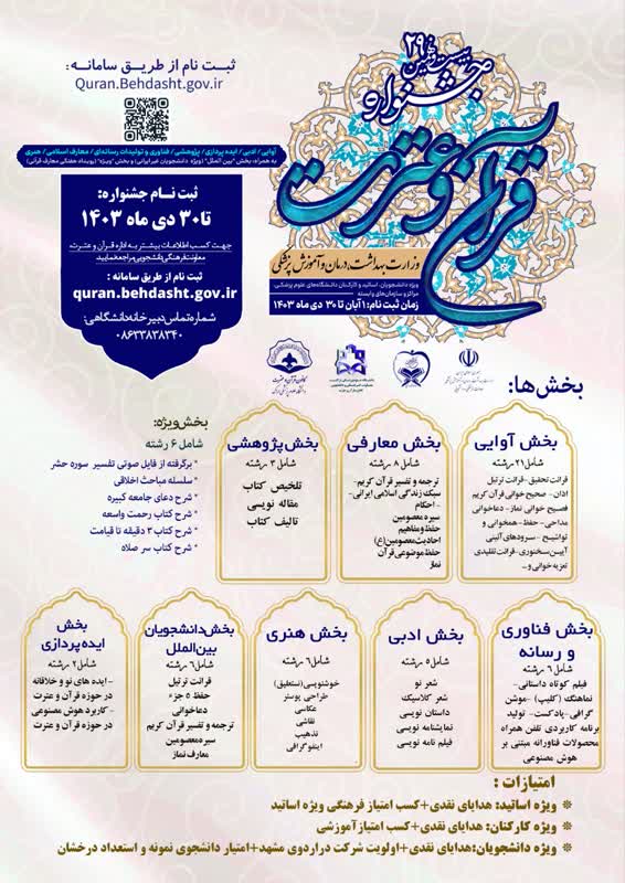 لینک وب سایت جهت ثبت نام علاقمندان : quran.behdasht.gov.ir