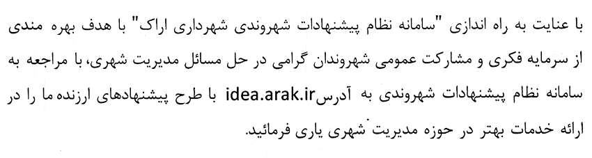 سامانه نظام پیشنهادات شهروندی شهرداری اراک