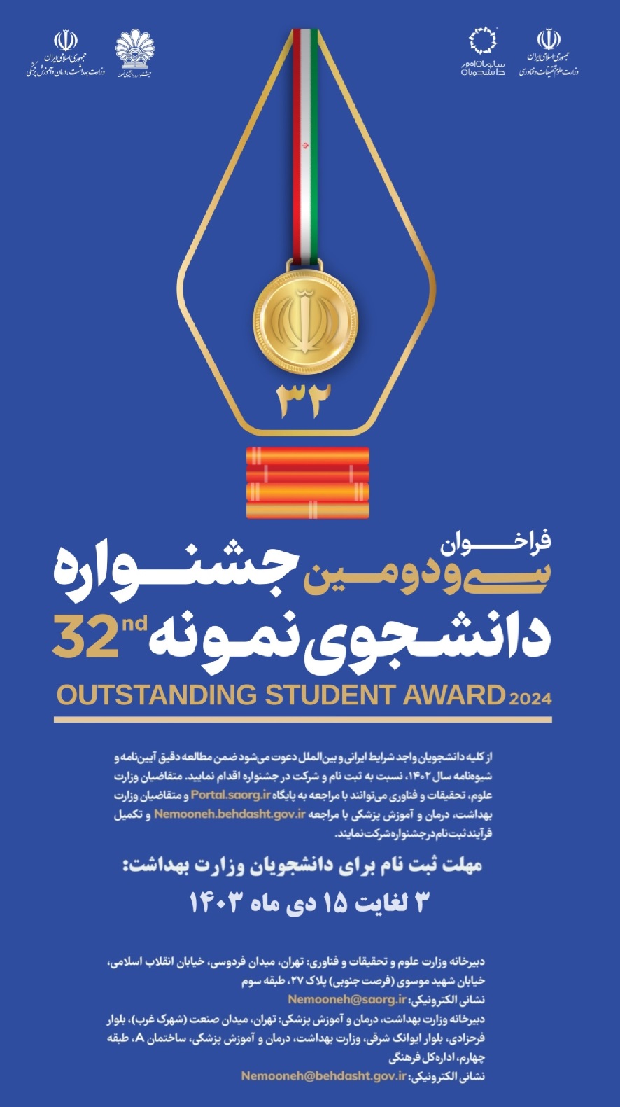 سی و دومین دوره جشنواره دانشجوی نمونه سال ۱۴۰۳ برگزار می گردد.