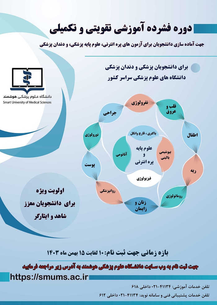 ثبت نام در دوره فشرده آموزشی تقویتی-تکمیلی جهت آماده سازی دانشجویان رشته های پزشکی و دندان پزشکی برای آزمون های علوم پایه پزشکی، دندان پزشکی و پره انترنی