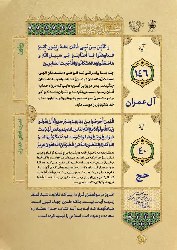 کلیدواژه‌ها: قرآن آموزش درمان بهداشت آیات جهاد جهاد محرم الحرام