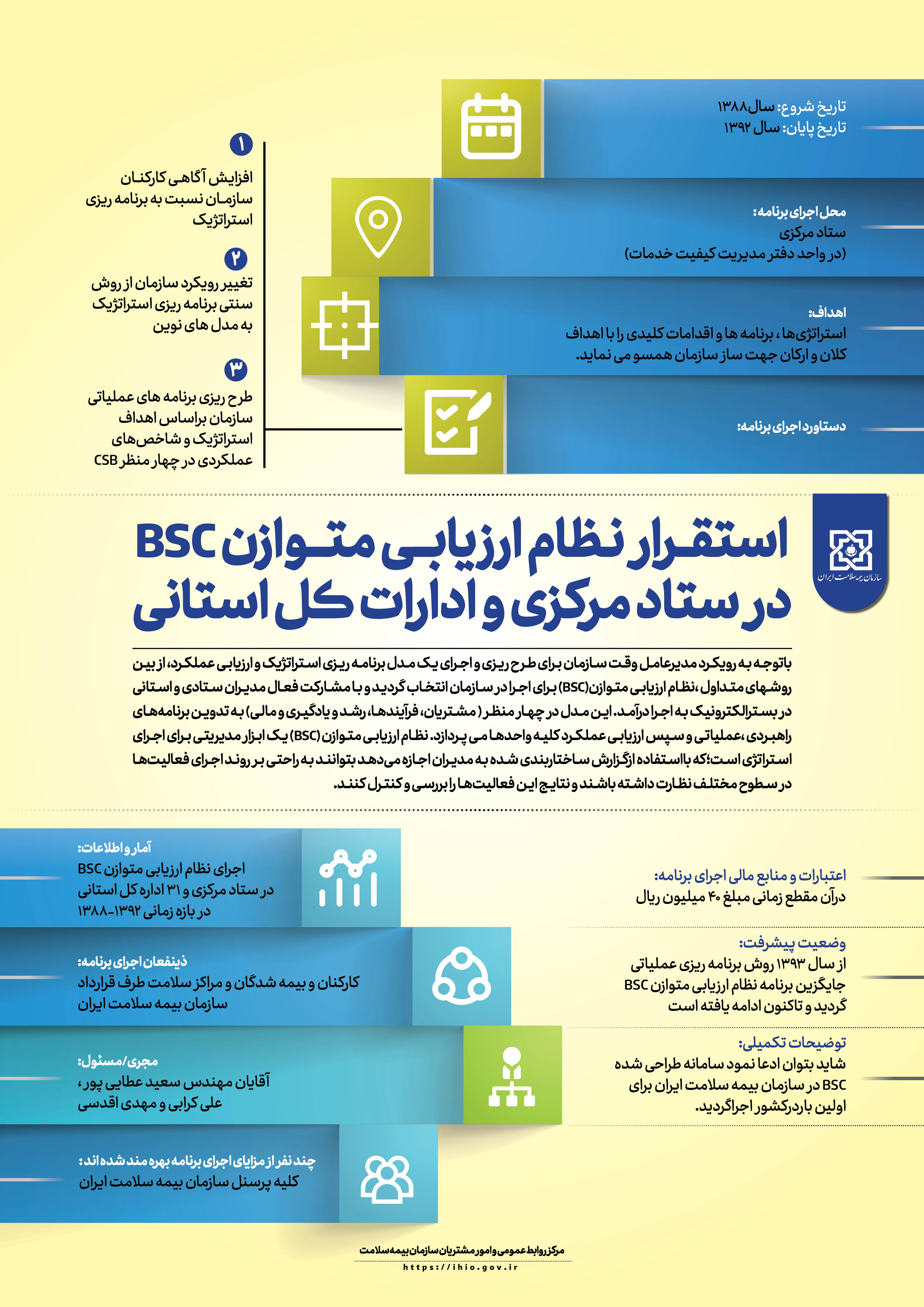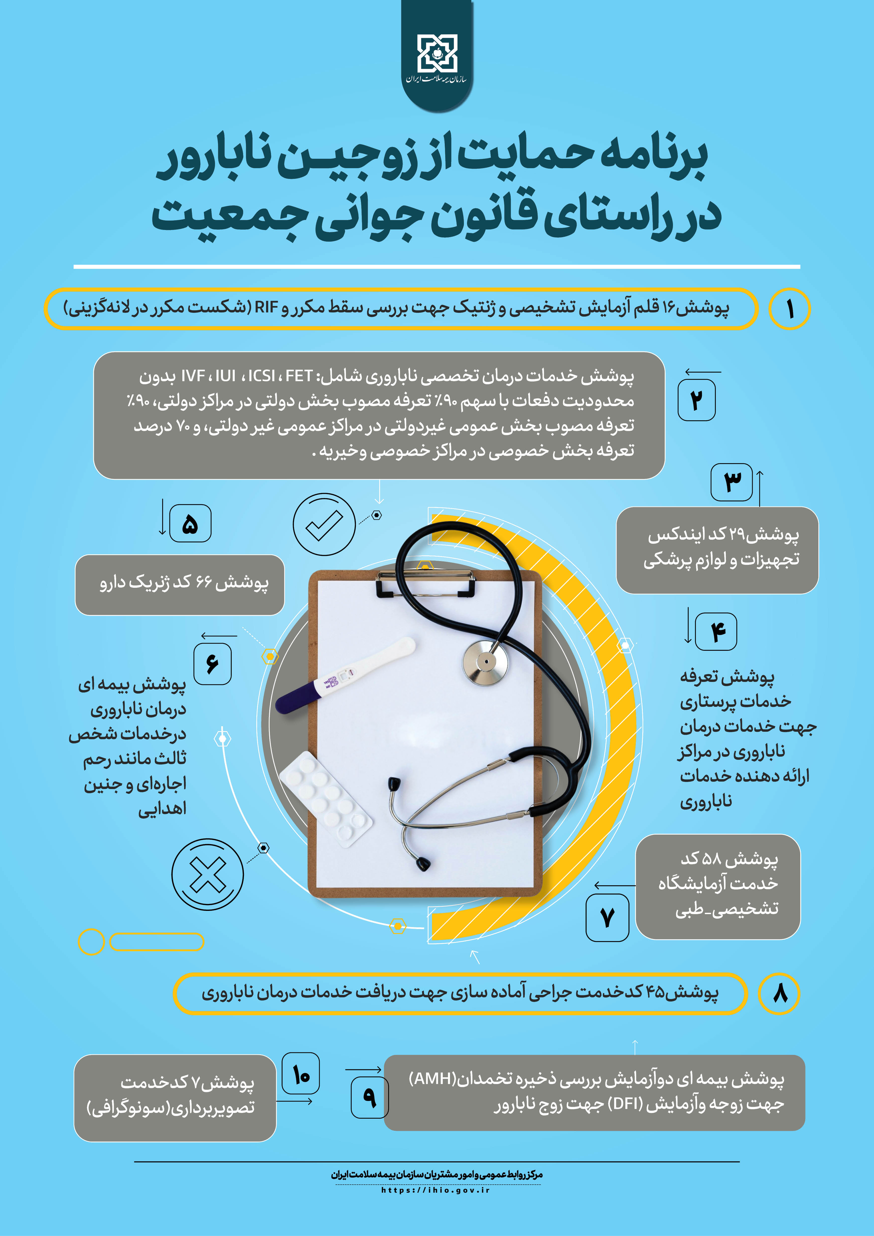 باتوجه به آغاز هفته بیمه سلامت، با شعار محوری وفاق ملی برای ایرانی سالم تر، پوسترهای خدمات قابل ارائه و دستاوردهای31 ساله سازمان بیمه سلامت ایران، جهت اطالع رسانی به پیوست می باشد.