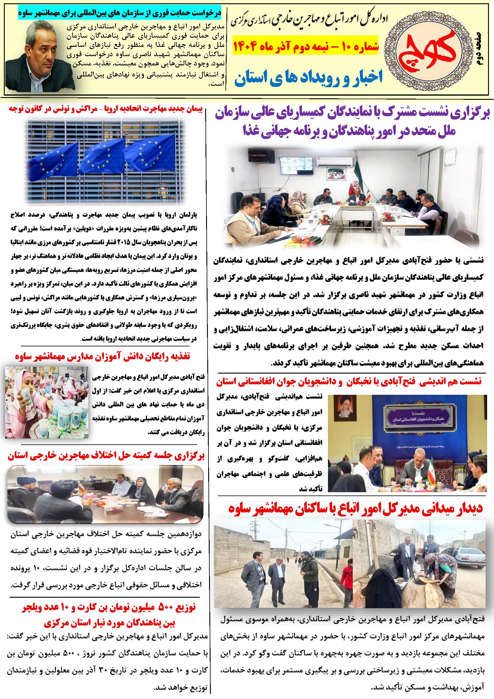 دهمین شماره نشریه کوچ ۰۳ دی ۱۴۰۴ | ۰۹:۲۱ کد : ۵۷۵۲۰ اطلاعیه ارسال به دیگران نام شما ایمیل شما ایمیل دریافتکننده ارسال انصراف تعداد بازدید:۴۸ دهممین شماره نشریه کوچ، توسط دفتر امور اتباع و مهاجرین خارجی استان مرکزی منتشر گردید.